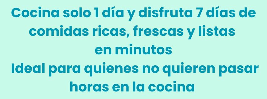 Recibís un libro digital con recetas, listas de compras y plan de Meal Prep para que cocines solo 1 día y disfrutes 7.